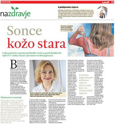 Sunce je izvor života na Zemlji, ali izlaganje suncu nosi i određene rizike. Svjetska agencija za istraživanje raka uvrstila je ultraljubičasto (UV) zračenje od sunca (i solarija) u prvu, najopasniju skupinu kancerogenih čimbenika – zajedno s arsenom, azbestom, duhanskim dimom i radioaktivnošću, izjavila je dr. Vesna Tlaker u razgovoru za Slovenske novice. Populacijske studije, koje proučavaju utjecaj brojnih faktora (kao što su tip kože, izloženost suncu i navike sunčanja) na pojavu raka kože kod velikog broja ljudi, jasno su pokazale postojanje povezanosti. Najizraženija je veza između sunčevog zračenja i pločastostaničnog karcinoma kože, dok je kod melanoma sunce jedan od čimbenika rizika – i jedini na koji možemo utjecati. Za prevenciju raka kože važno je spriječiti opekline od sunca, redovito pregledavati kožu i pokazati liječniku bilo kakve sumnjive promjene.